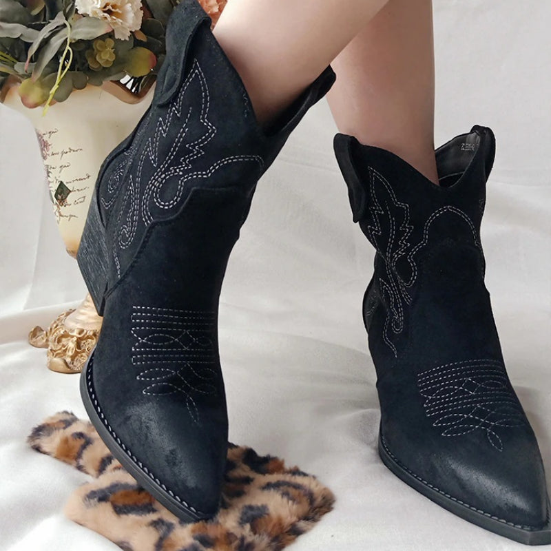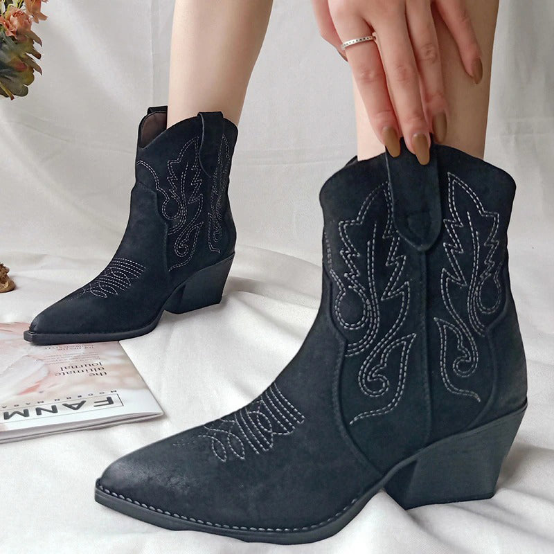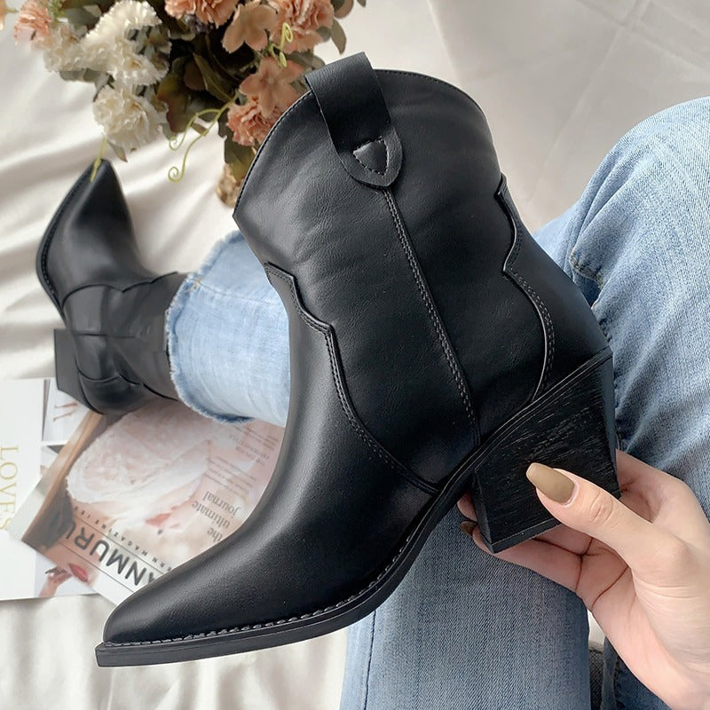 Ankle High Cowboy Style Slip-On High Heels Boots for Women