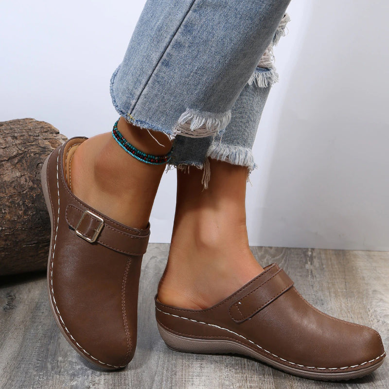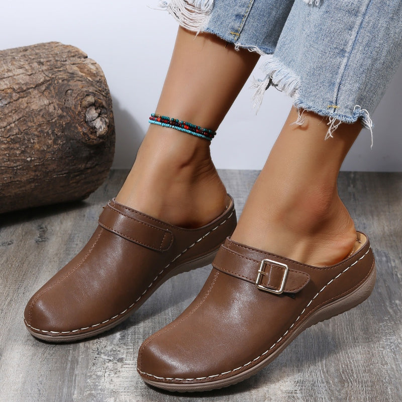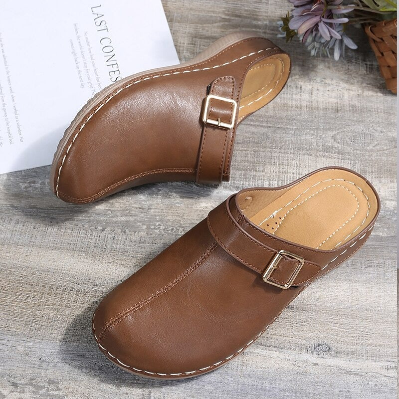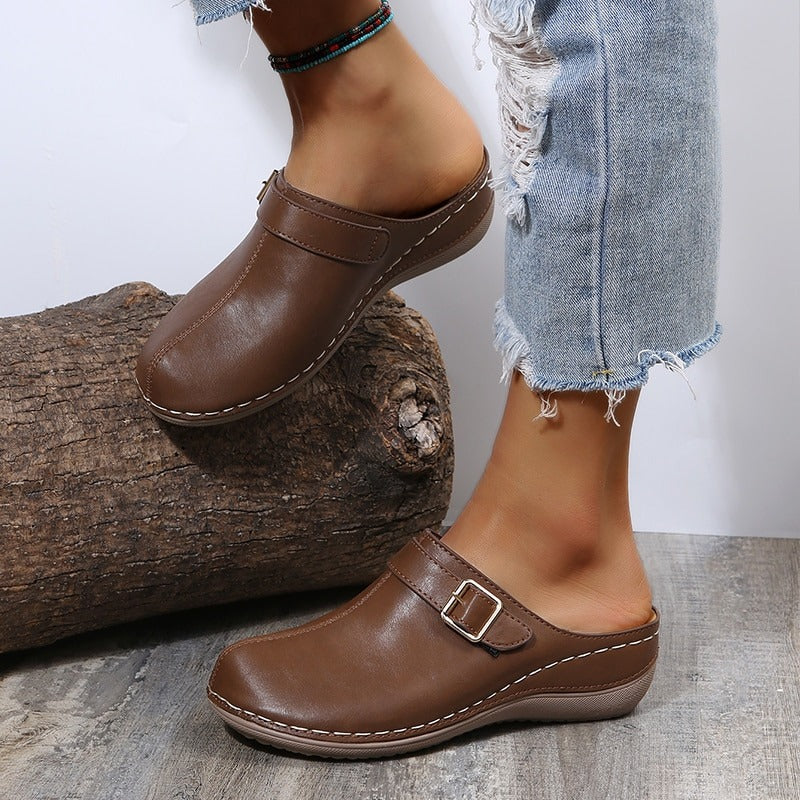 Breathable Retro Slip-on Vegan Leather Half Shoes