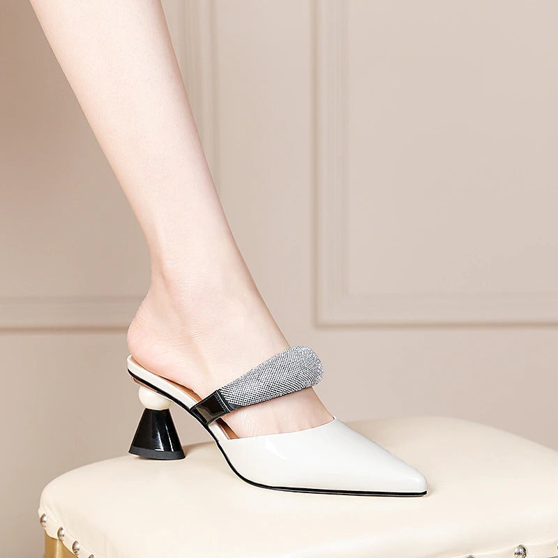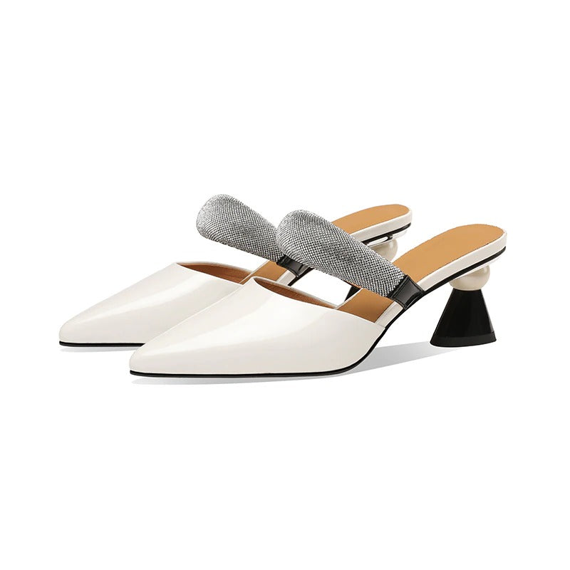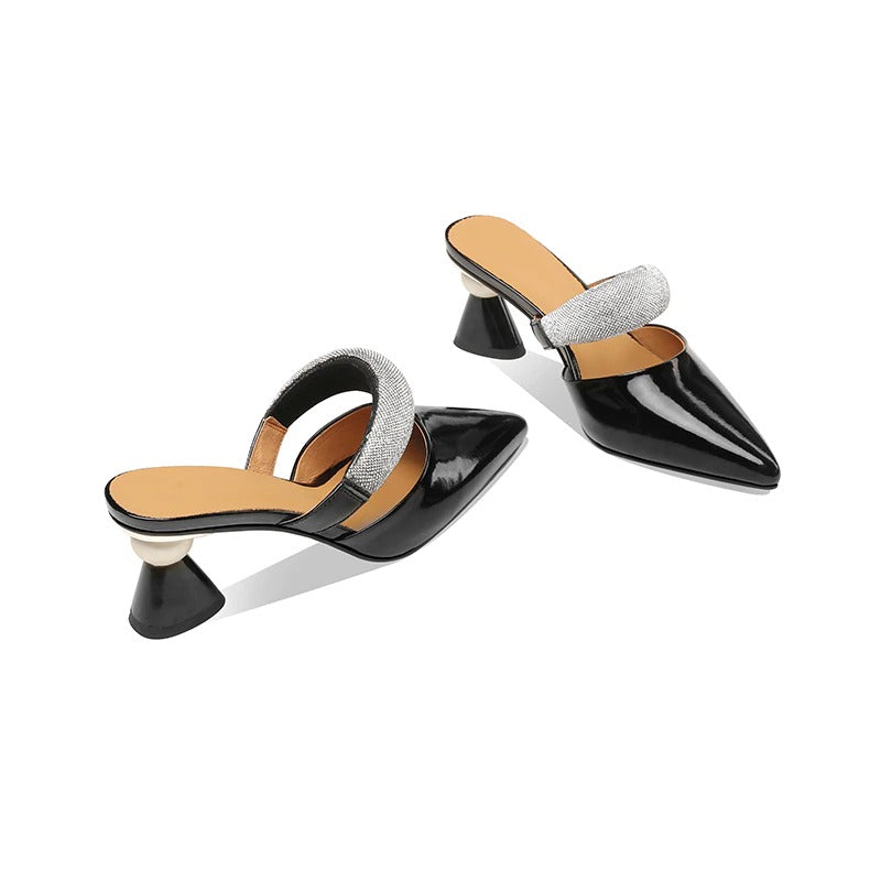 Heels are a woman's best friend! The right kind of shoe can boost your confidence, transform your look and make heads turn as soon as you enter the room! With these Rhinestone Adorned Slip-on Vegan Leather Block Heels Sandals, you're sure to WOW everyone!