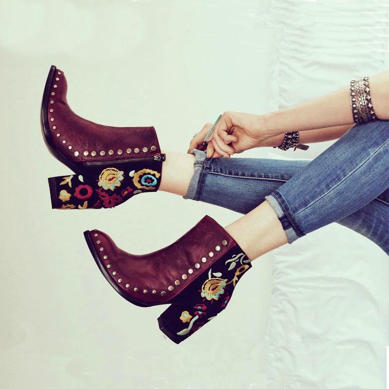 Rock and roll with awesome kicks like a pair of these Rocking Faux Leather Ankle Boots with Floral Embroidery! A pretty and unique pair of shoes to match your jeans, skirts, and dresses!