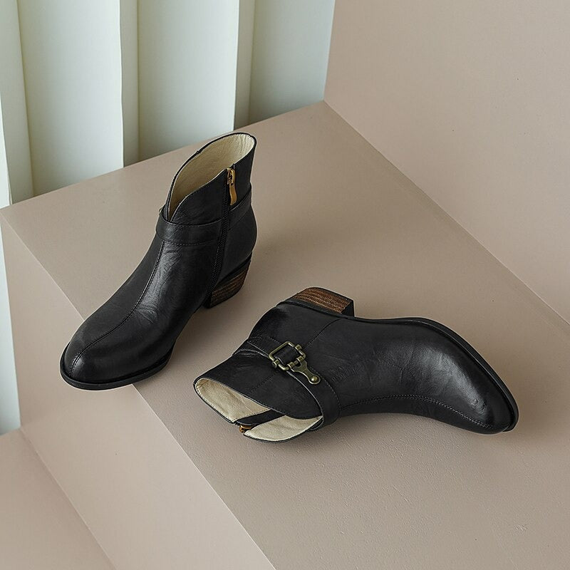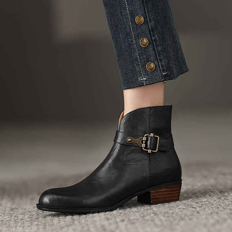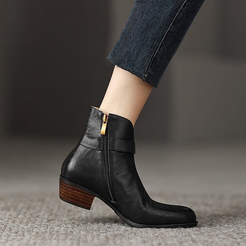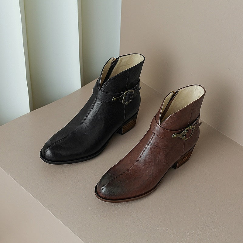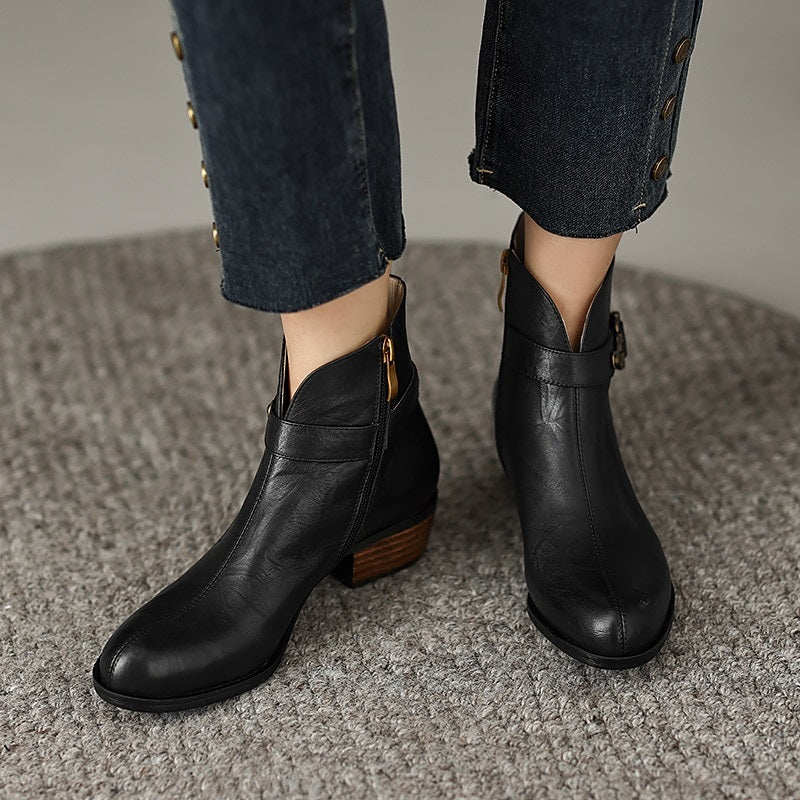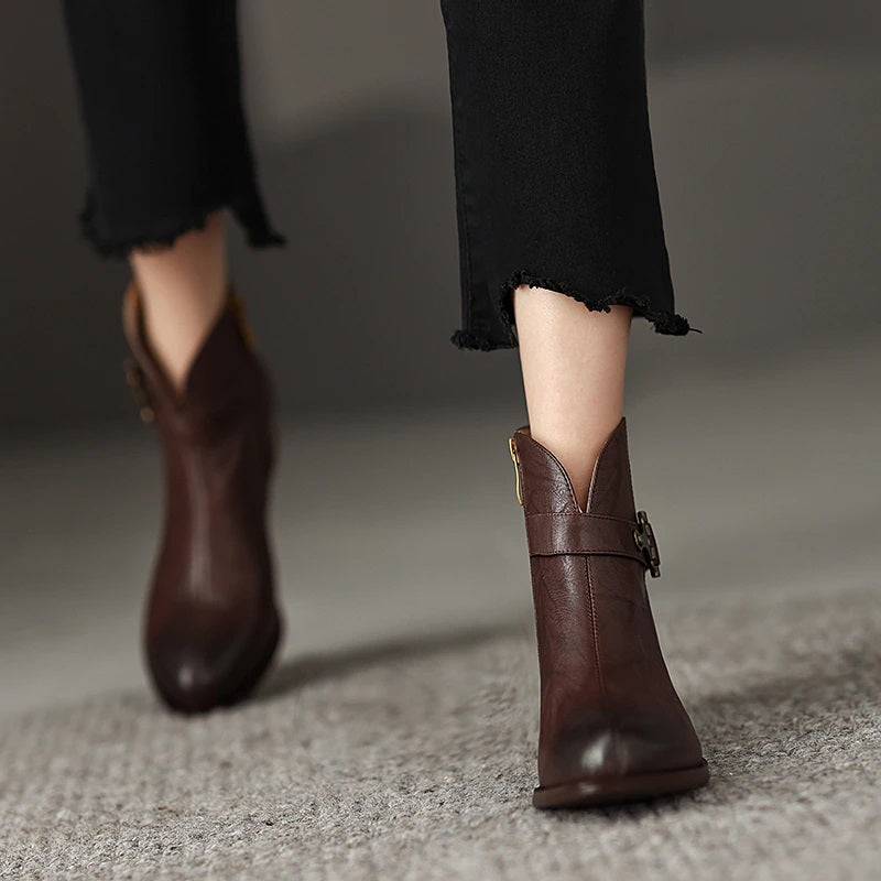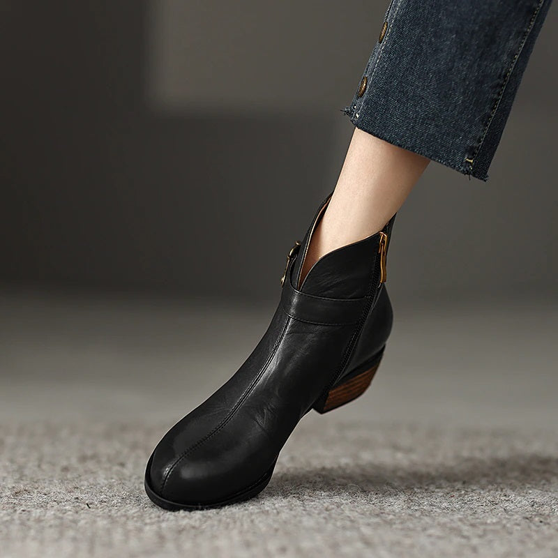 Women's Cowgirl Fashion V-Cutout Ankle Boots with Side Zipper Buckle