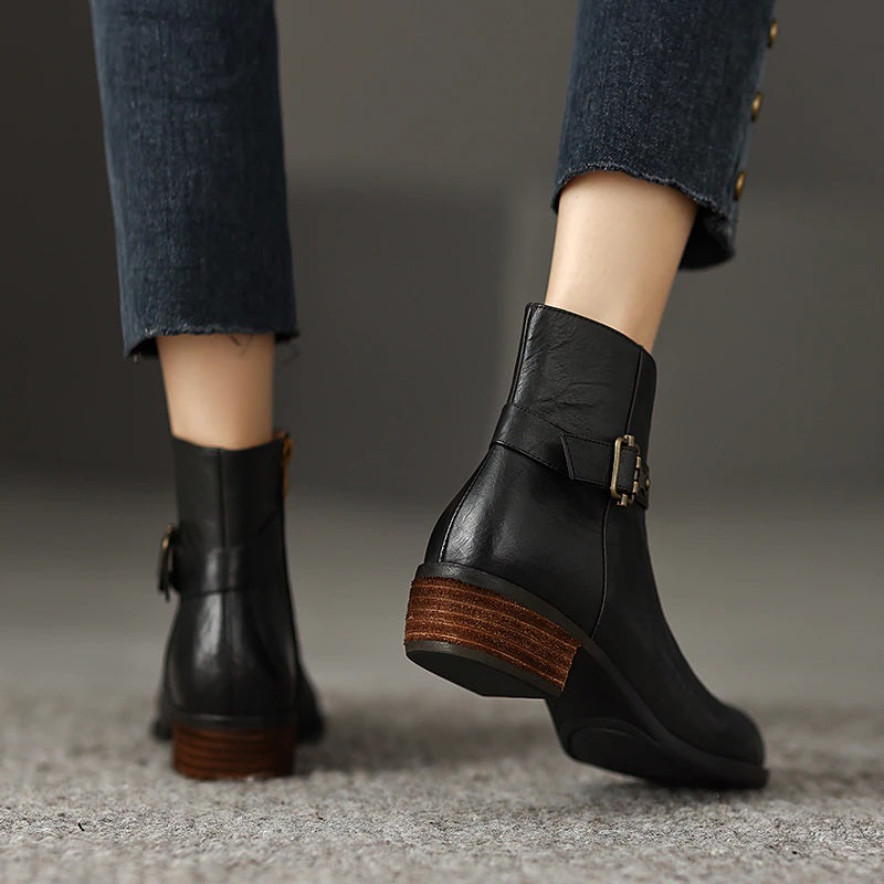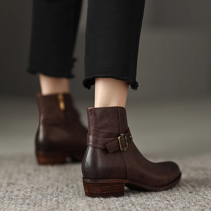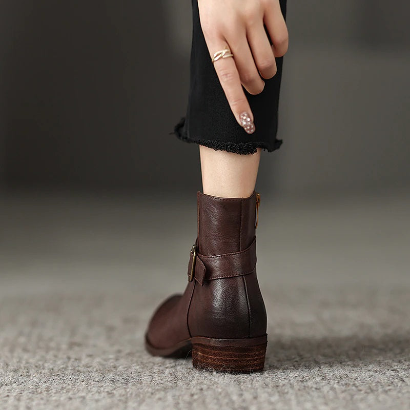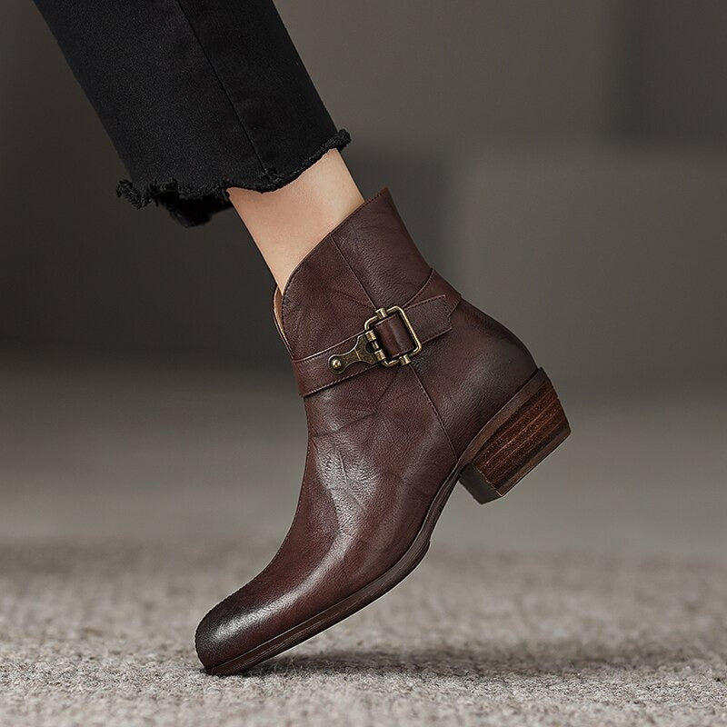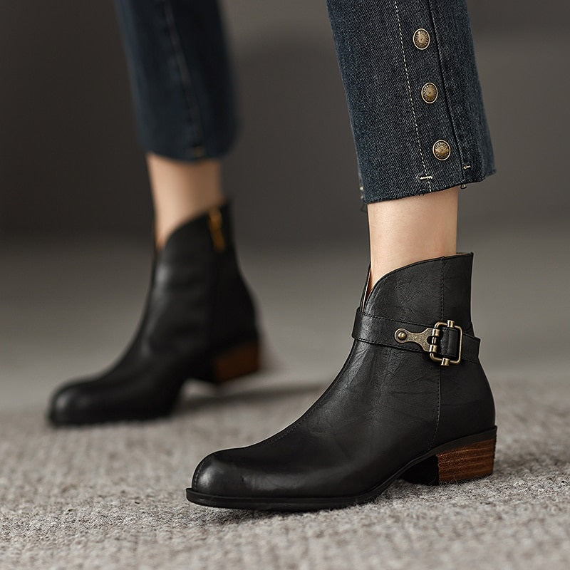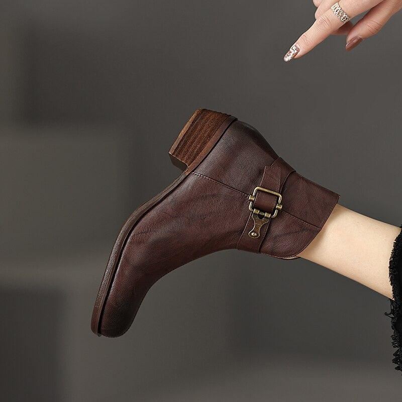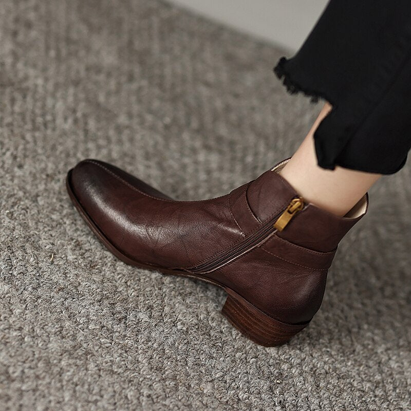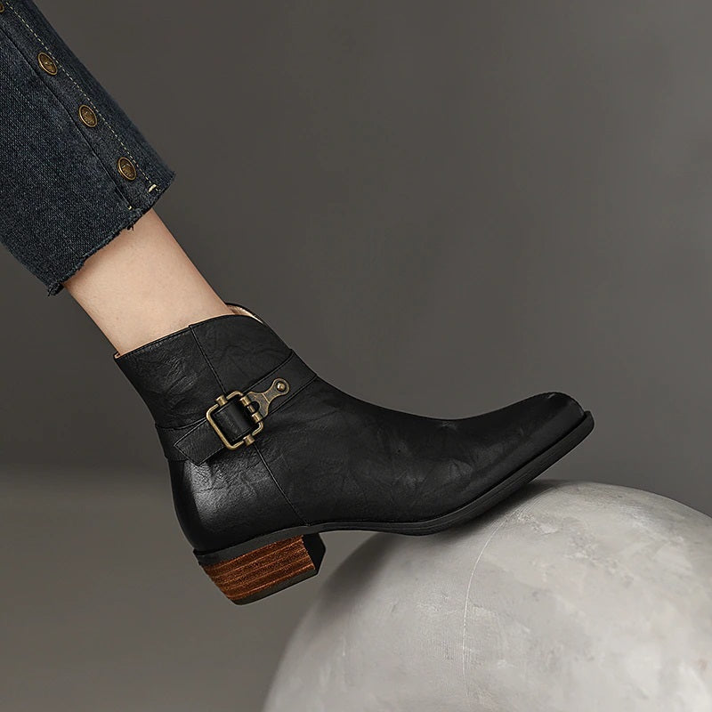 Women's Cowgirl Fashion V-Cutout Ankle Boots with Side Zipper Buckle