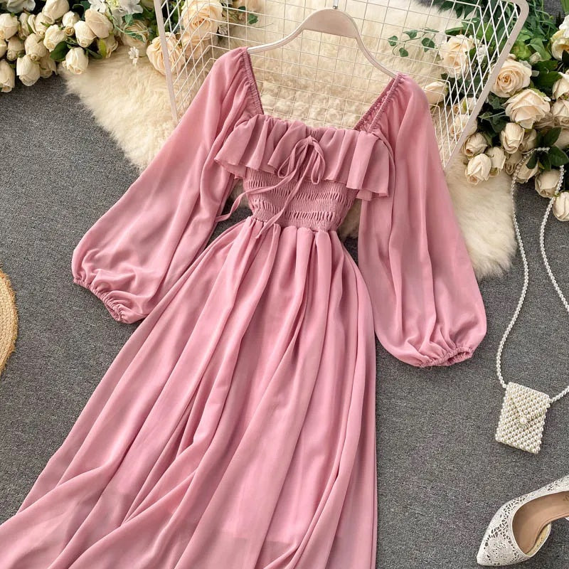 Upgrade your wardrobe with the stunning Chic Elegant Square Collar Puff Sleeve Maxi Dress for Women—designed to combine effortless elegance with contemporary charm.