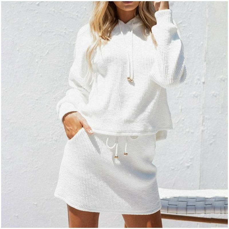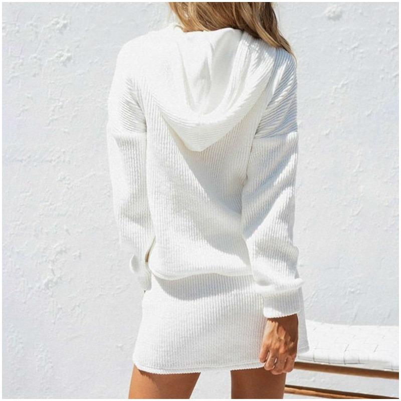 Getting Fashionably Sexy and Warming with this Hooded Sweatshirt and Mini Skirt!