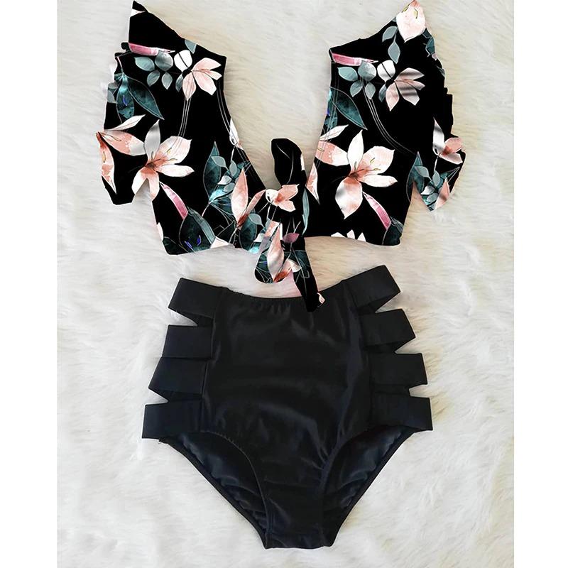 Pucker up those lips and strike a pose with these High Waist Tropical Print Ruffle Bikini Swimwear! You will absolutely look picture perfect and will have everyone looking at you!
