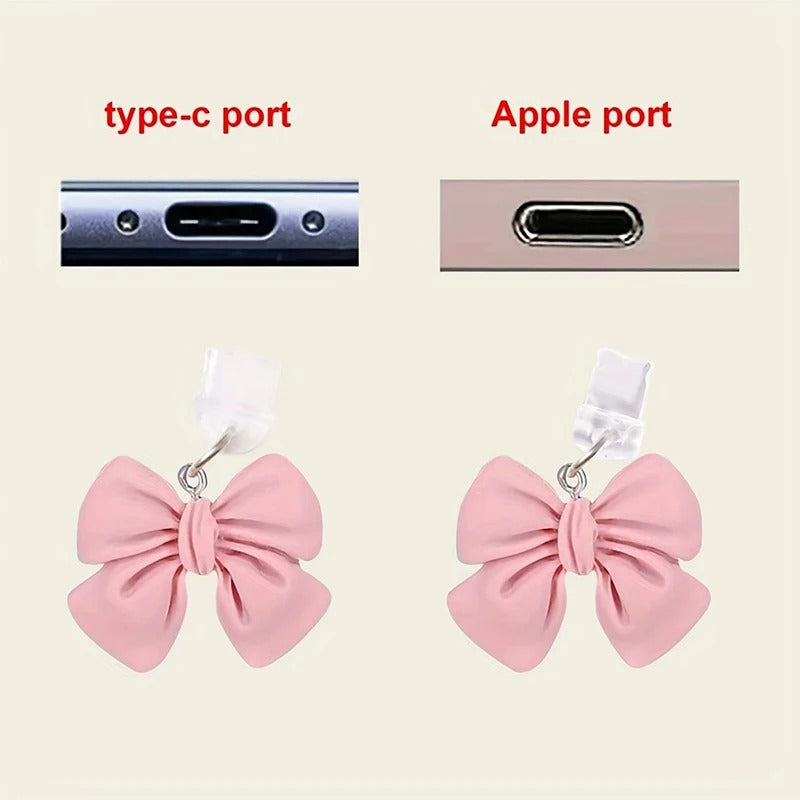 Chic Pink Bow Dust Plug Hanging Pendant for iPhone and Type-C Ports