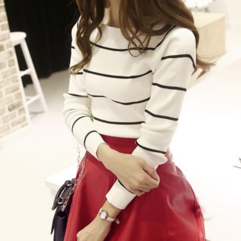 Easygoing Striped Pattern Long Sleeve Pullover Sweater