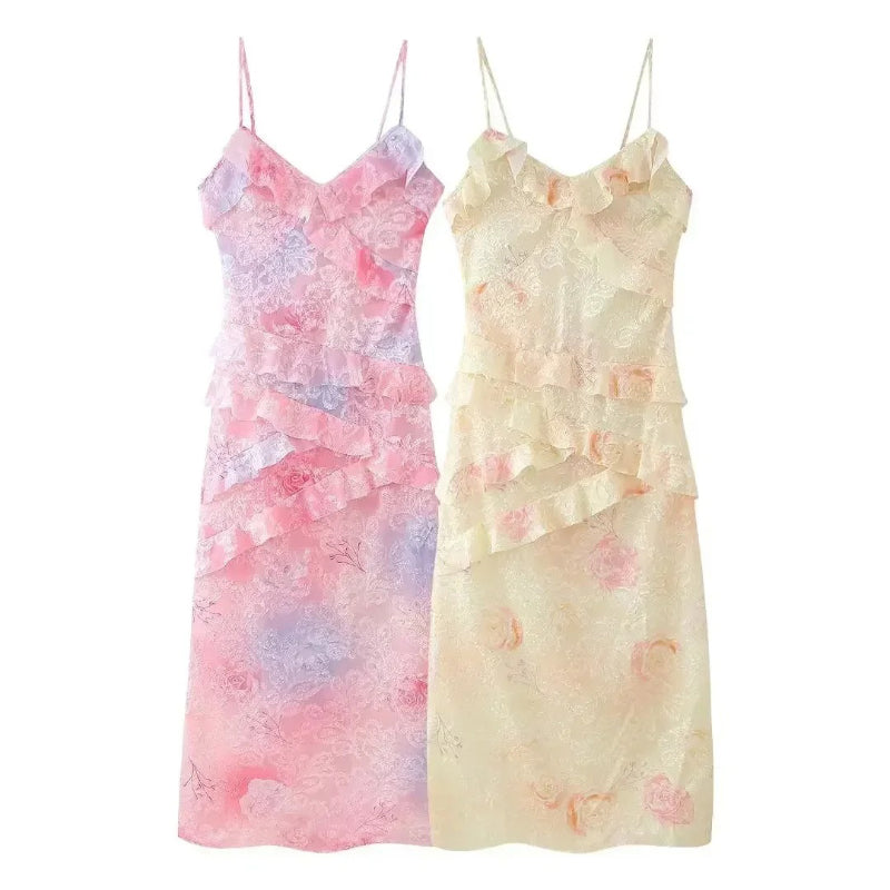 This show-stopping gown combines flirtatious ruffles, a daring open back, and playful flounced details that scream elegance with a fun twist. Perfect for summer parties, date nights, or any occasion where you want all eyes on you, this dress offers a flawless silhouette and effortless style. Light, breathable, and irresistibly chic, it's your new go-to for turning heads and feeling fabulous.