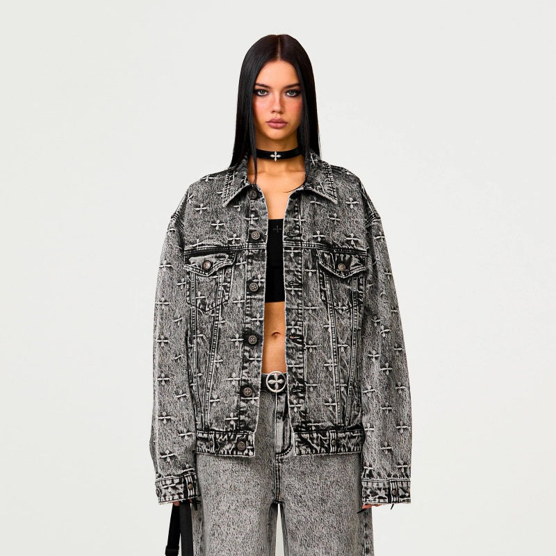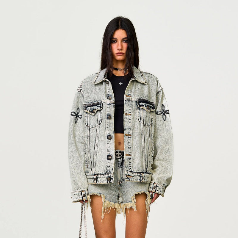 Want to Turn Heads with a Vintage Vibe? Meet the Washed Denim Jacket with Embroidered Elegance!